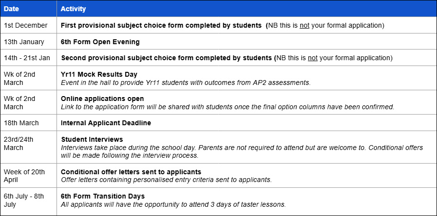 Sixth Form Application Process & Key Dates